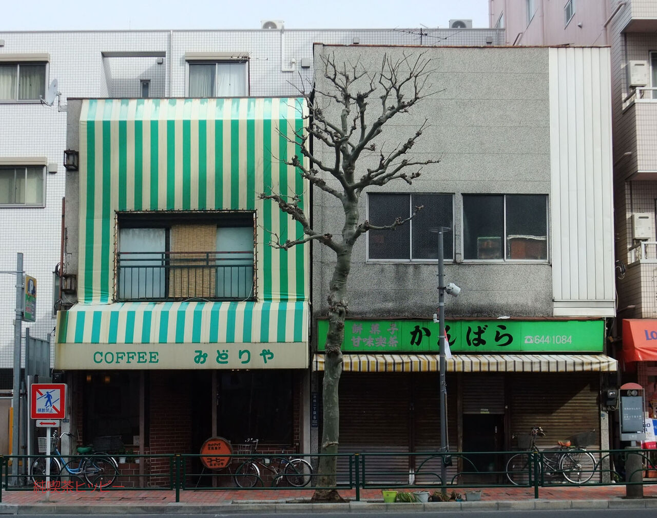 住吉駅を出て小名木川方面に進み、やや大きな交差点を右に曲がったところにある喫茶店。緑のストライプのテントがノスタルジック。