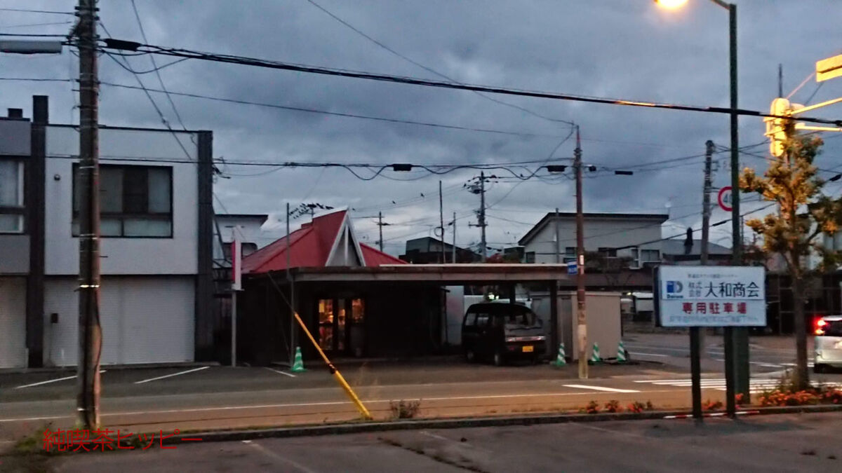 店の前、駐車場の屋根を増設していない頃は三角屋根が際立っていた。