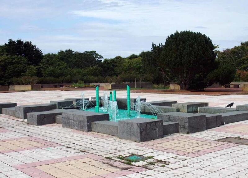 噴水には緑の竹?