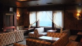 ここは建物の海側すべてがつなぎ目のない巨大な窓ガラスになっていて(もっと正確に書くと、つなぎ目さえもガラスになっている ※画像参照)、海だけが目の前に広がる世界。