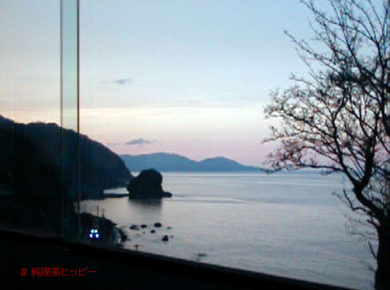 夕暮れ時、ゆったりとしたBGMの中、キャンドルが揺れるスペースで夕映えの海の景色を楽しんだとき動画を撮っていた。画質は悪いがそれをキャプチャーしたのが下の画像。