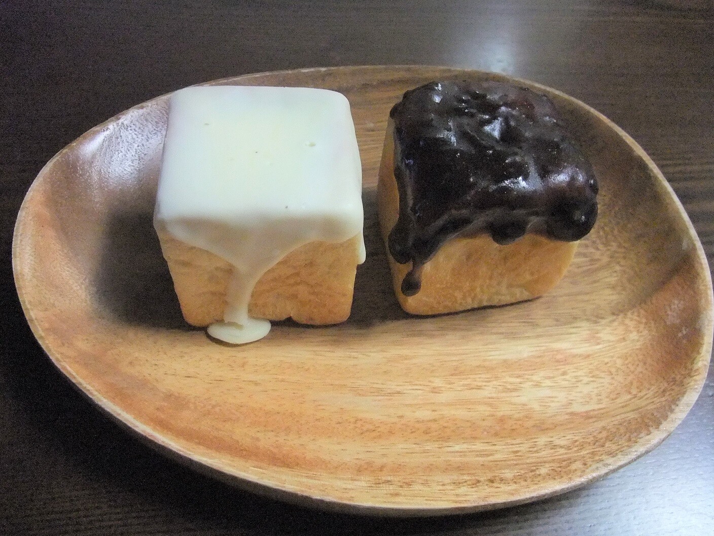 カブッと食べると、コーティングされたようかん、そして白いクリームと餡の絡まりに舌鼓。