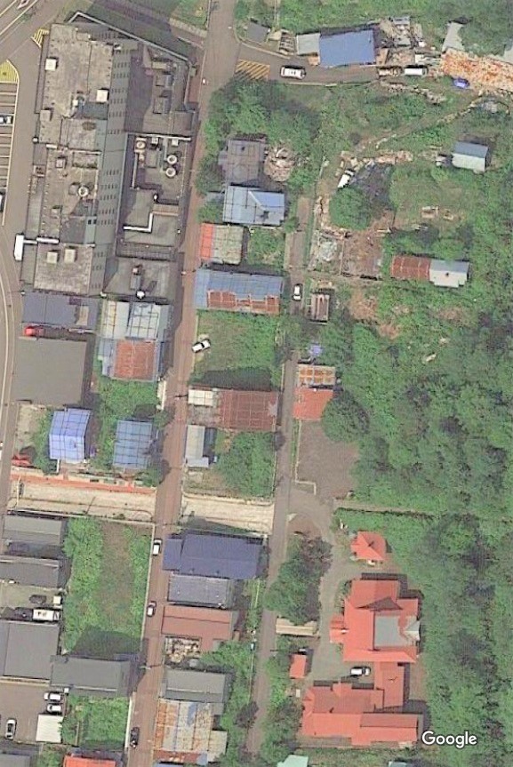 Googleマップの航空写真では下の一角のレポートに相当します。