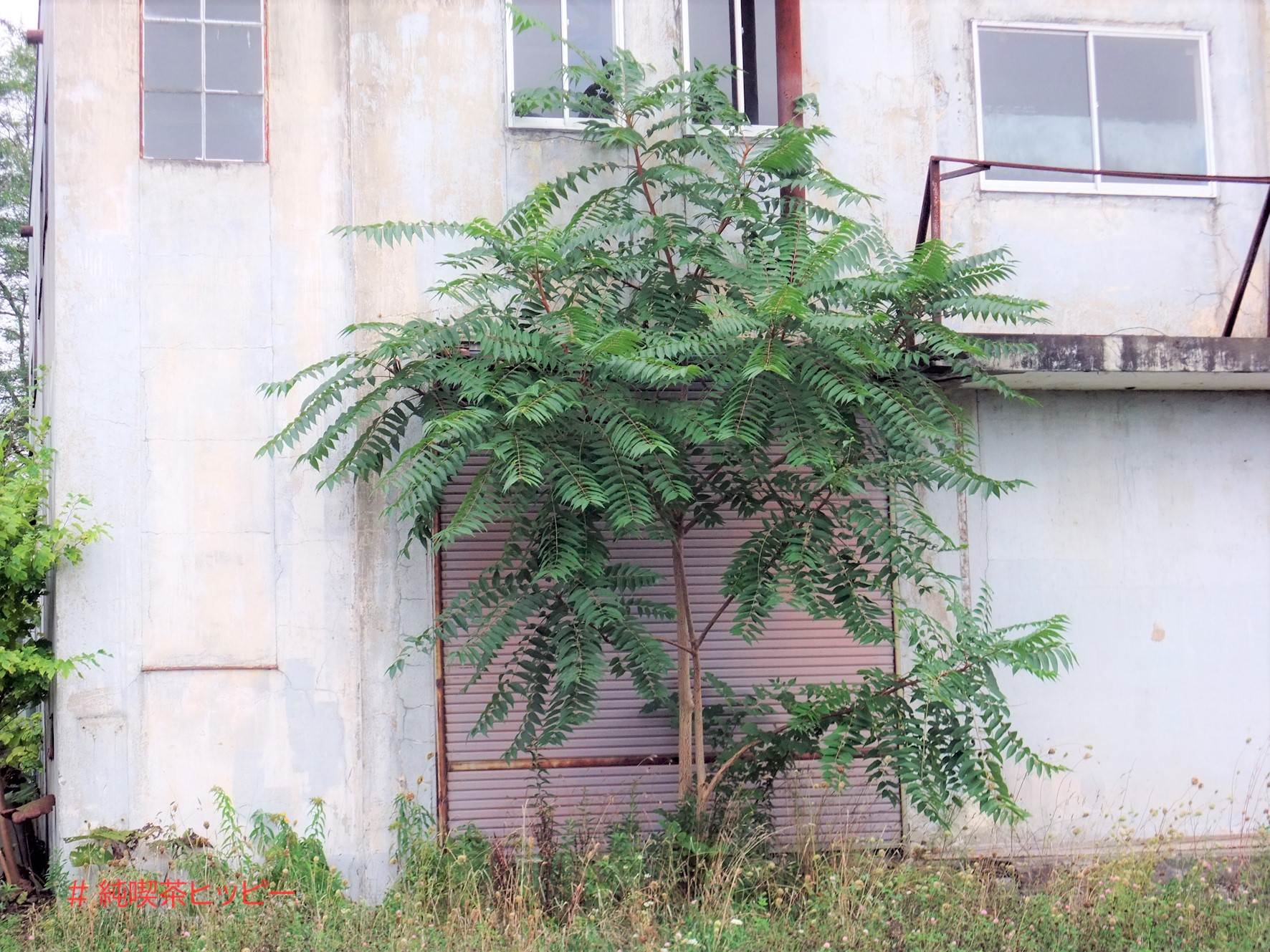シャッター前は木が大きく育って完全にふさいでいる状況。