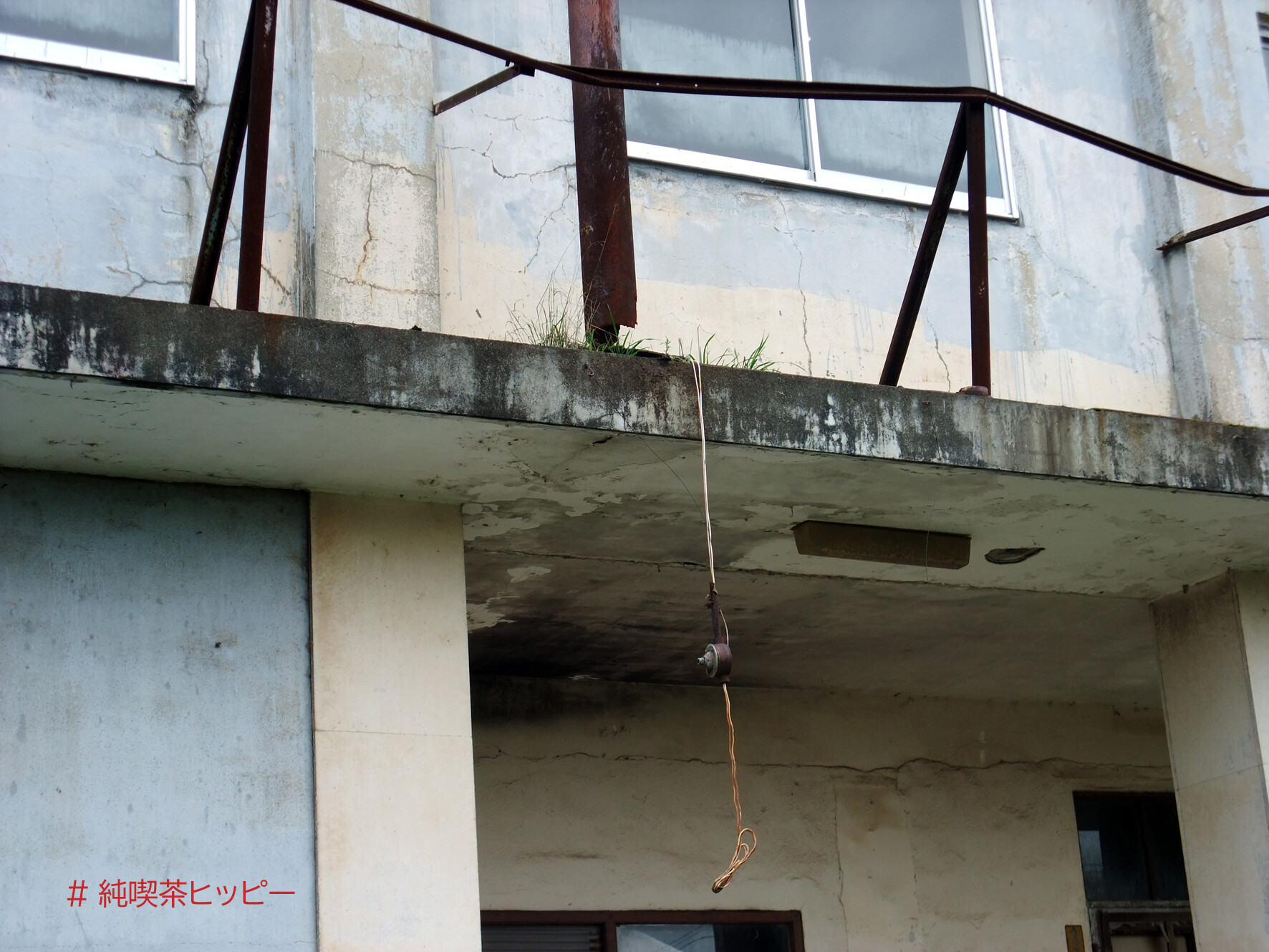 ちぎれた配線がぶら下がっています。