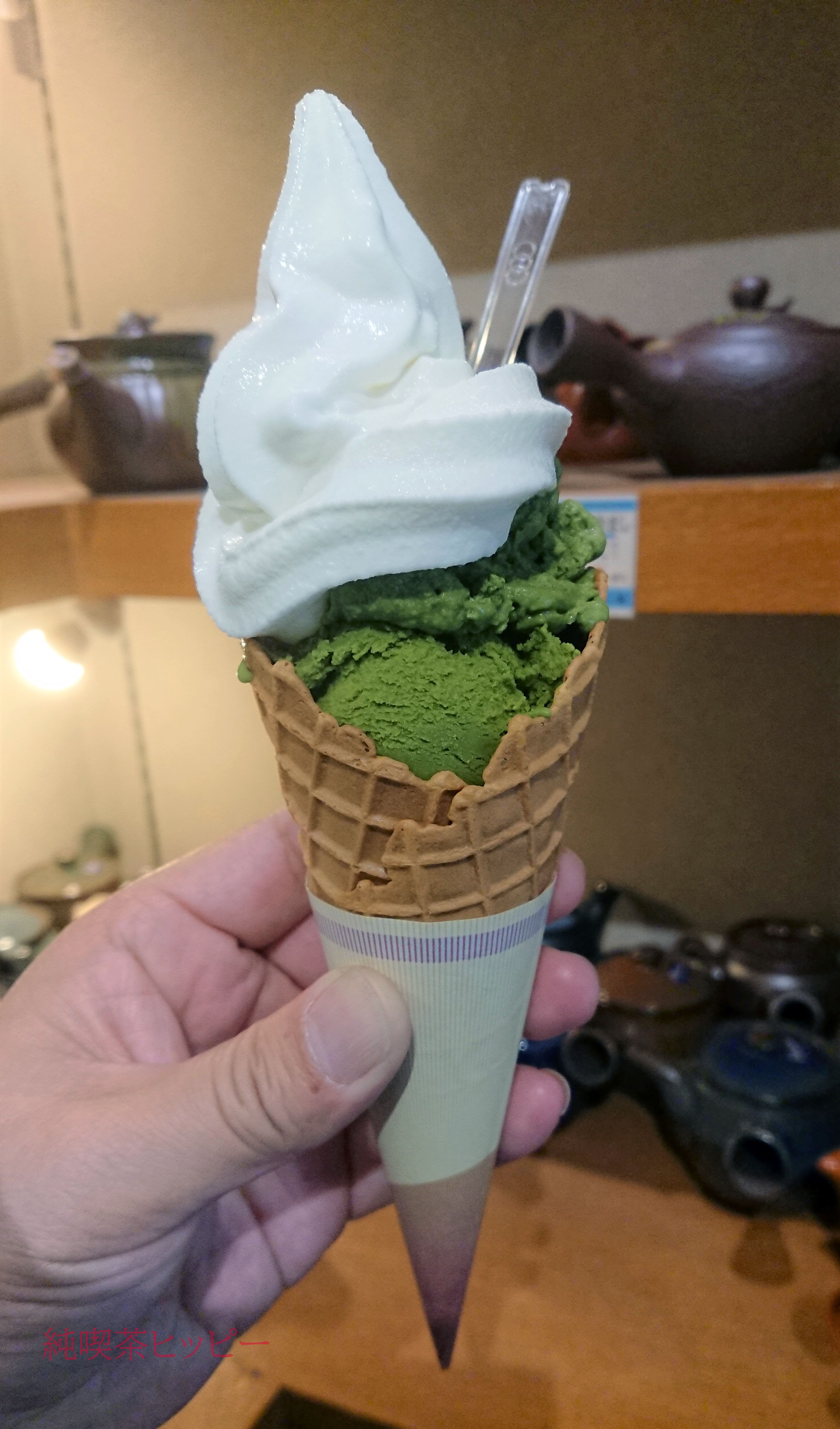 手にしたアイスからは味わい深いお茶の香りが期待度以上に放出。