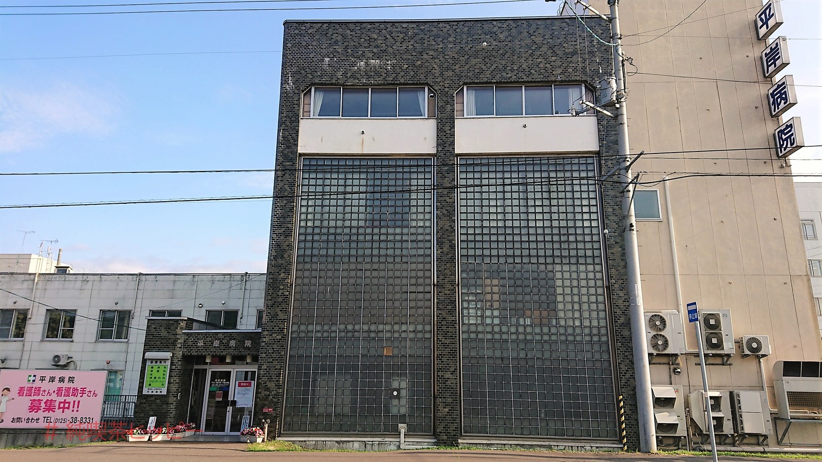 「赤平茂尻中央クリニック」という看板が見えるけど、ちょっと新しいので、もともとは違う病院だっと思われますね。