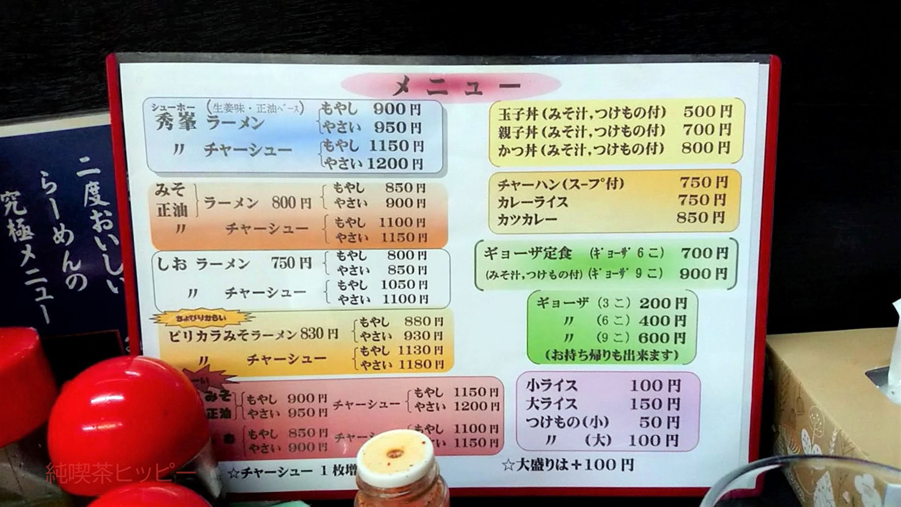 「秀峯ラーメン」と「秀峯チャーシュー」の価格差はたった250円!