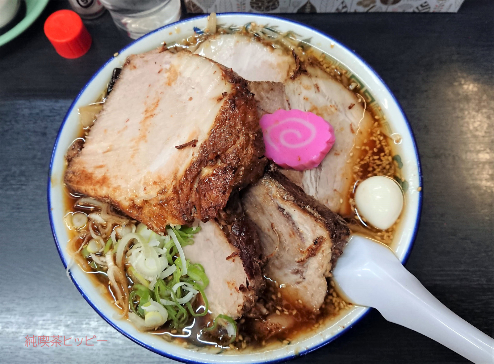 下は、普通の「秀峯ラーメン」に、チャーシューを一枚追加したパターン。もともと一枚のってるから、計二枚になるってわけ。