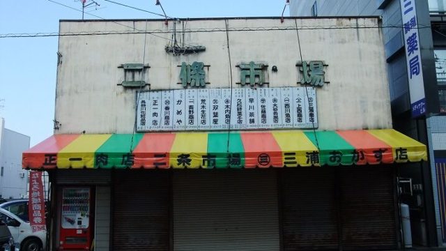 ともえ市場 旭川市3条通3丁目左8~9「ともえ」としては1928年に創業だけど、実際は「廉売市場」として1920年くらいから営業を続けている市場。暗い中だったので粗い写真になっちゃいましたがレンガ煙突が時代を感じさせます