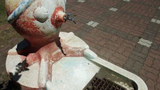北陵高校前にある公園でタコ水道を発見し、頭をなでて喫茶に向かいました。