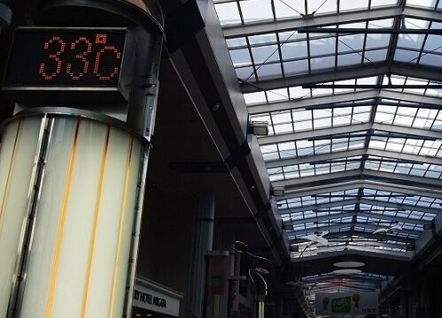 本町通アーケードアーケードを見下ろしたところ