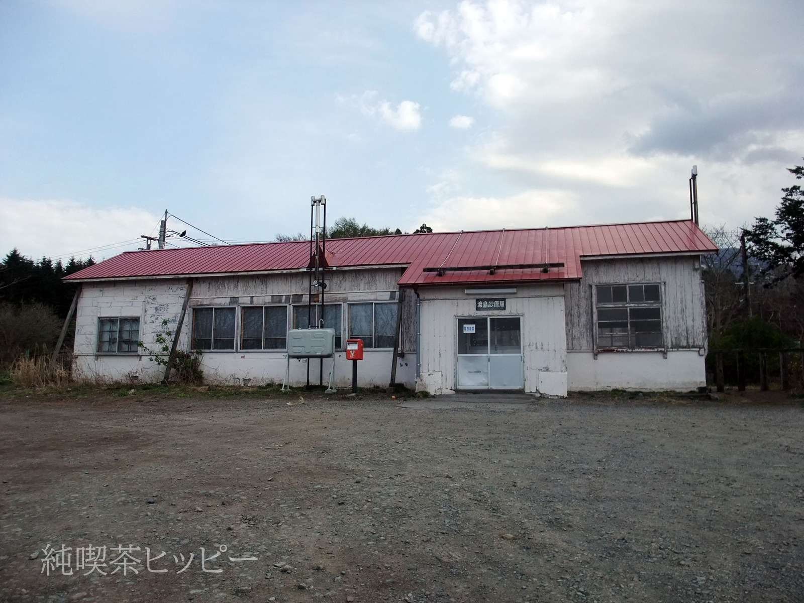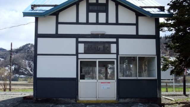 東森駅とカッコいい駅前民家北海道茅部郡森町港町赤い三角屋根の駅舎。屋根は地上近くまで延びている。駅前にとても良いデザインの民家をみつけた。こりゃカッコいい。壁上部の凸や石壁、アールの窓。なんとなく、右側は喫茶店だったのではないかと。廃墟のよ...
