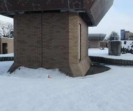 ◆建造物【千歳・苫小牧・室蘭】 チトセ建造物 千歳市グリーンベルト(地下駐車場)と建造物(排気口か?)夜、別の建造物 道は凍結してまるでスケートリンク。非常にキケン!千歳観光連盟の一部が入っている第12 ふじやビル。 2010.12.27 ◆建造物【千歳・苫小牧・室蘭】