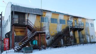 ◆建造物【千歳・苫小牧・室蘭】 恵庭の街 路地裏はのらネコがたくさん。恵庭商工会議所市営住宅の団地新しい建物だけどバルコニーに紫の透明アクリル板が使われていて珍しかったです 2010.12.26 ◆建造物【千歳・苫小牧・室蘭】
