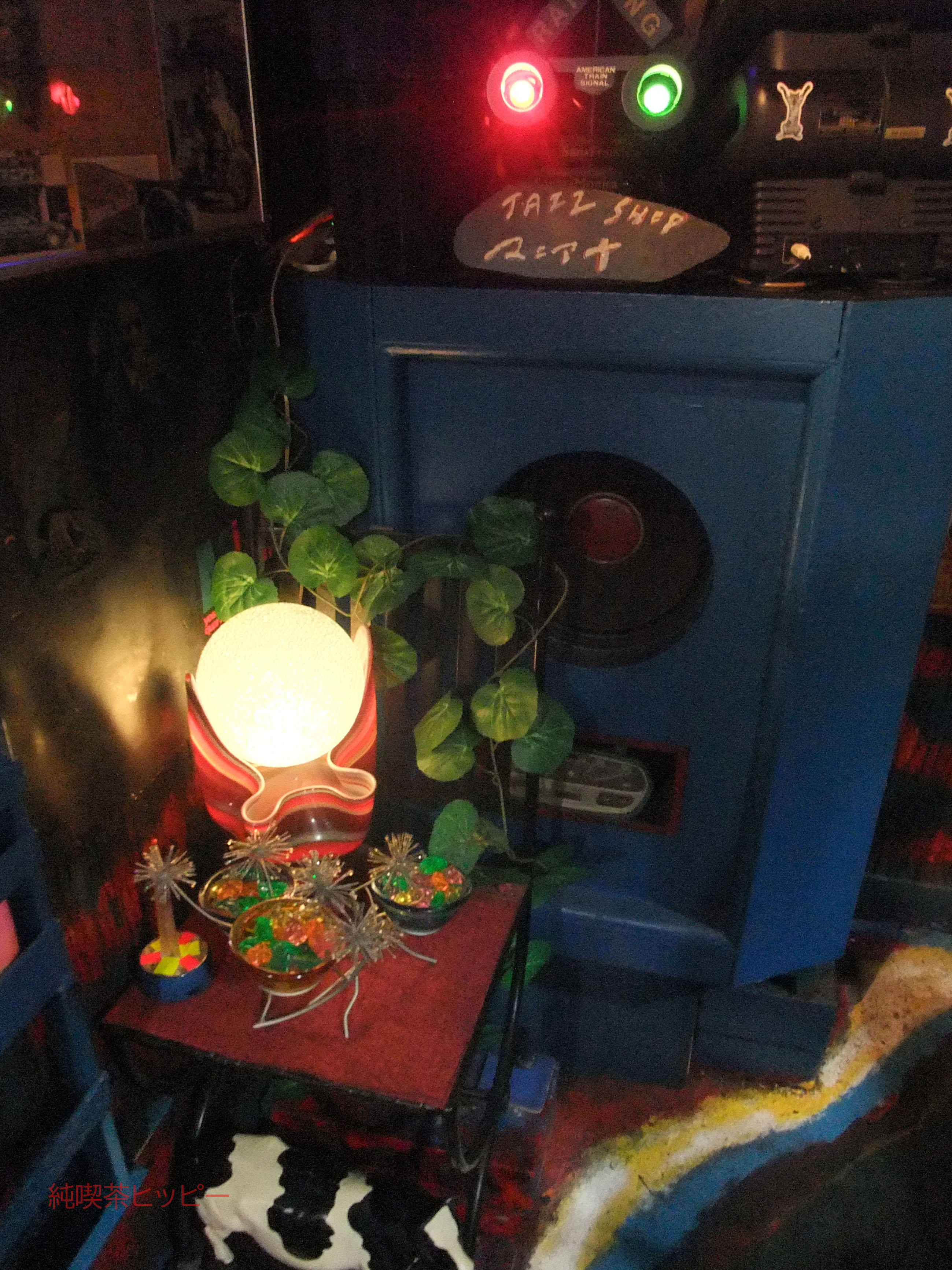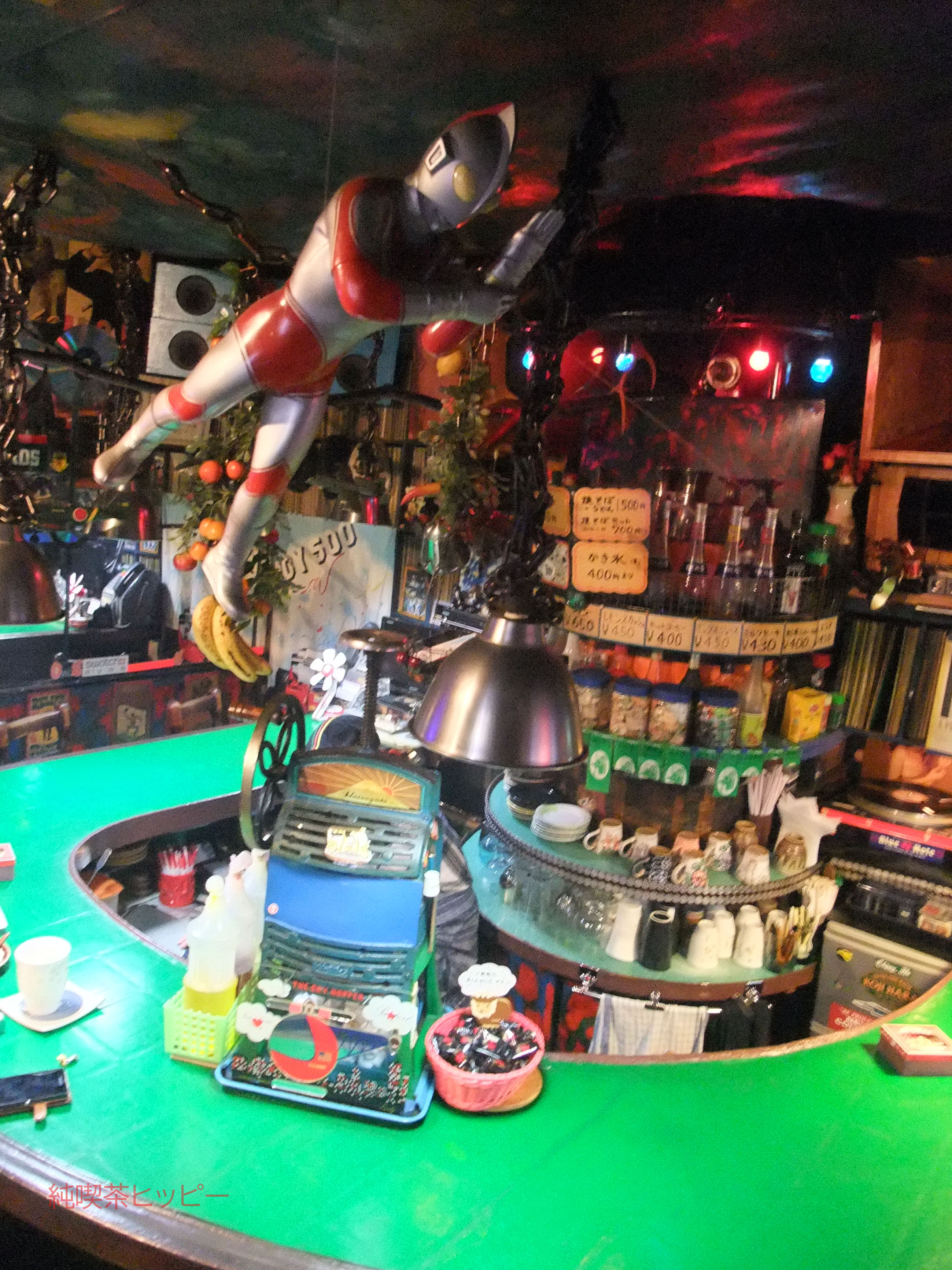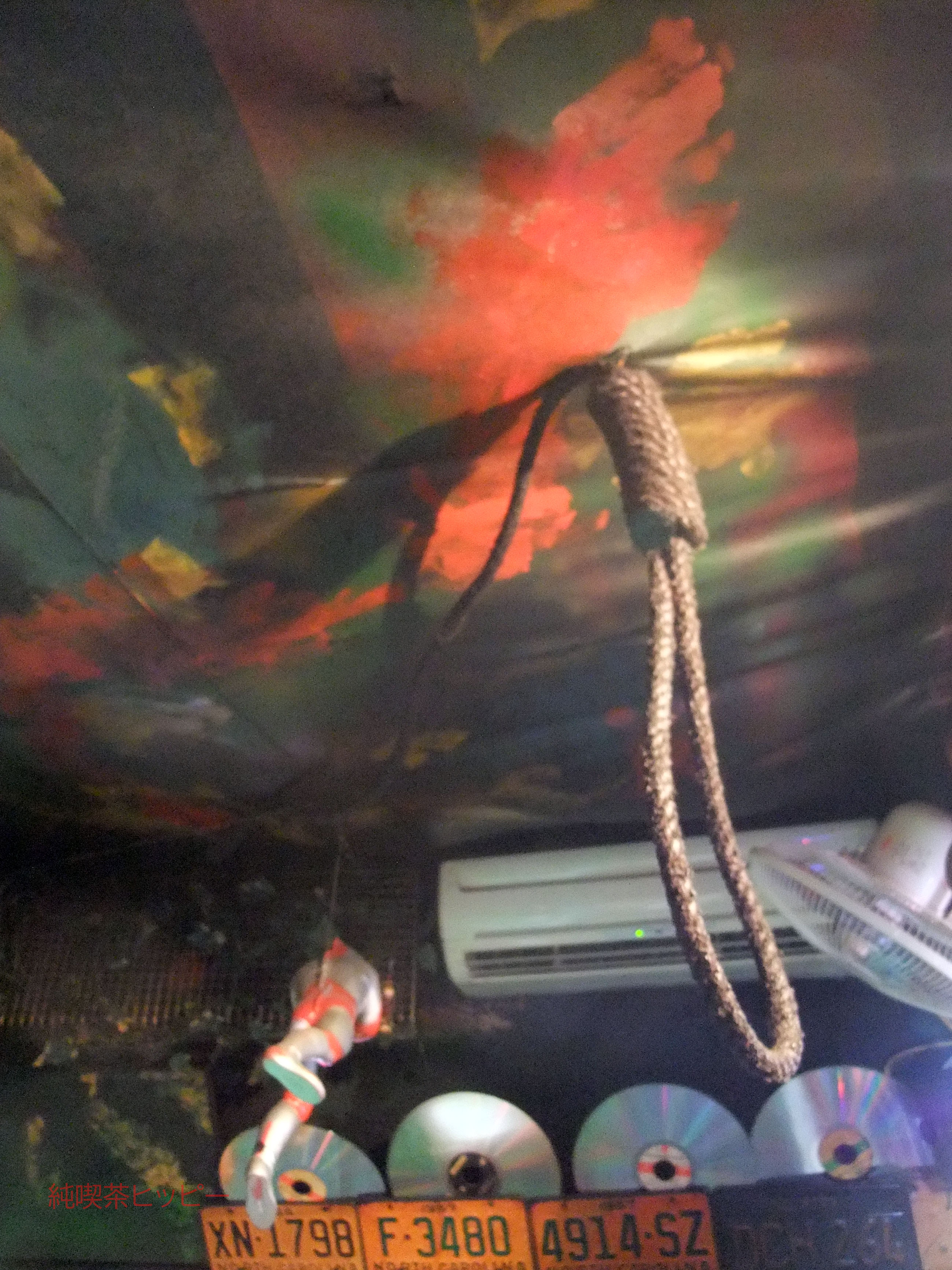 ジャズレコードを5,000枚以上所有し、わけのわからぬ雑貨を大量に飾り、天井には首つりロープとウルトラマンをぶら下げる。