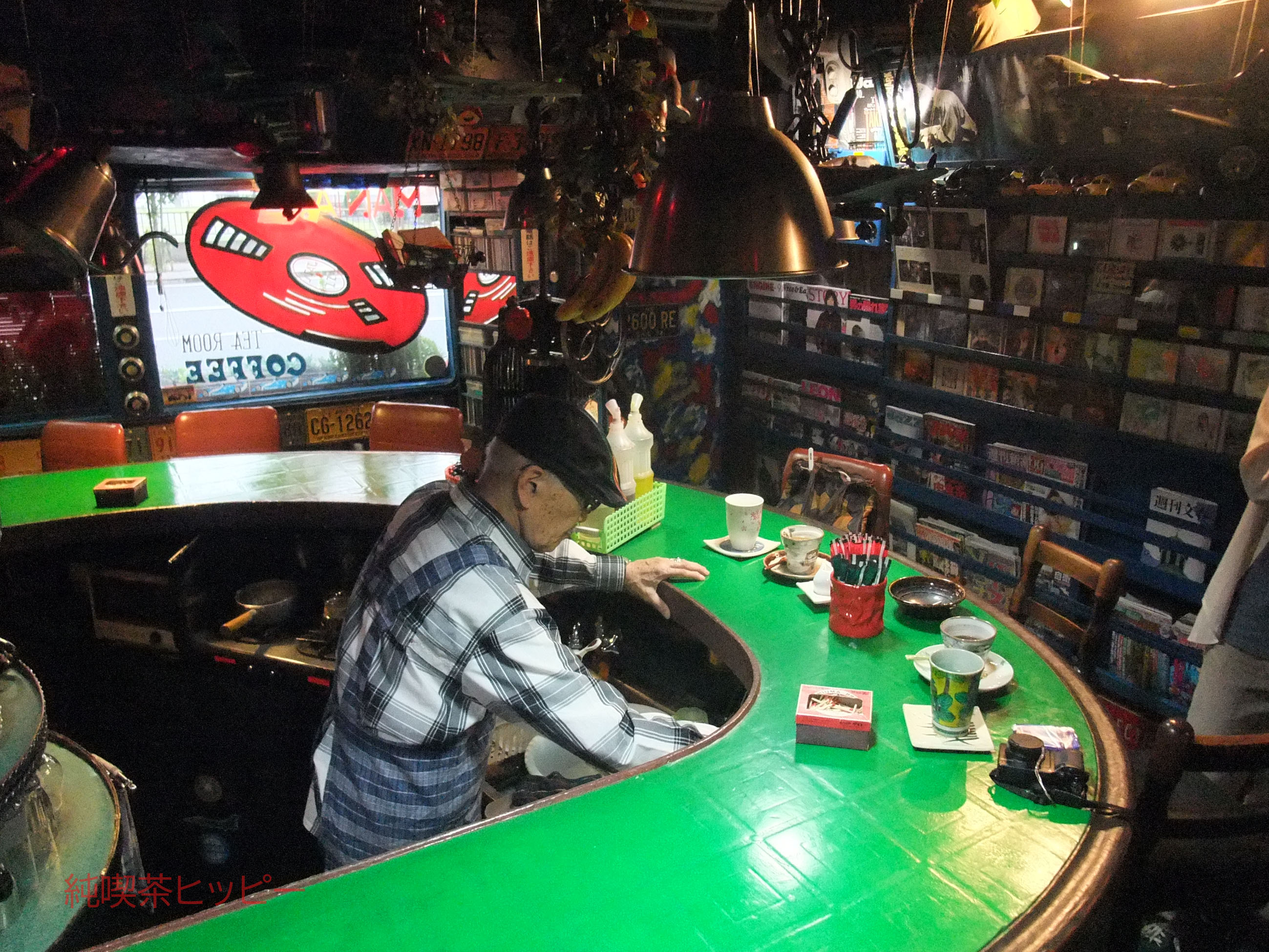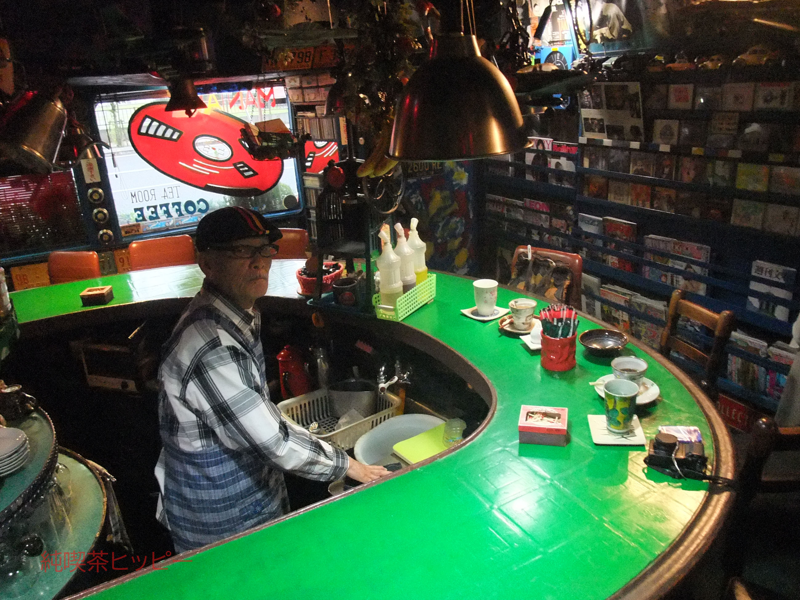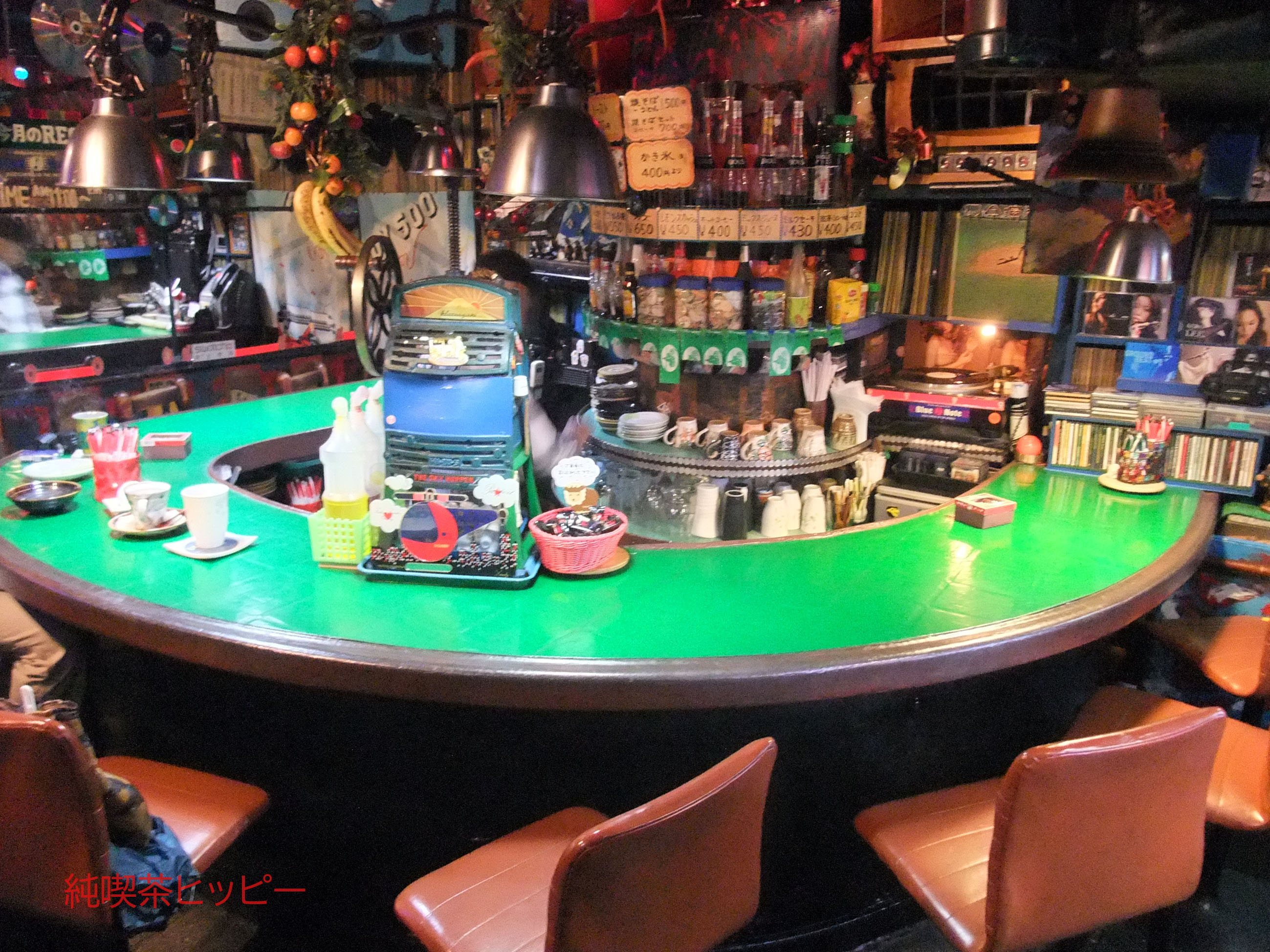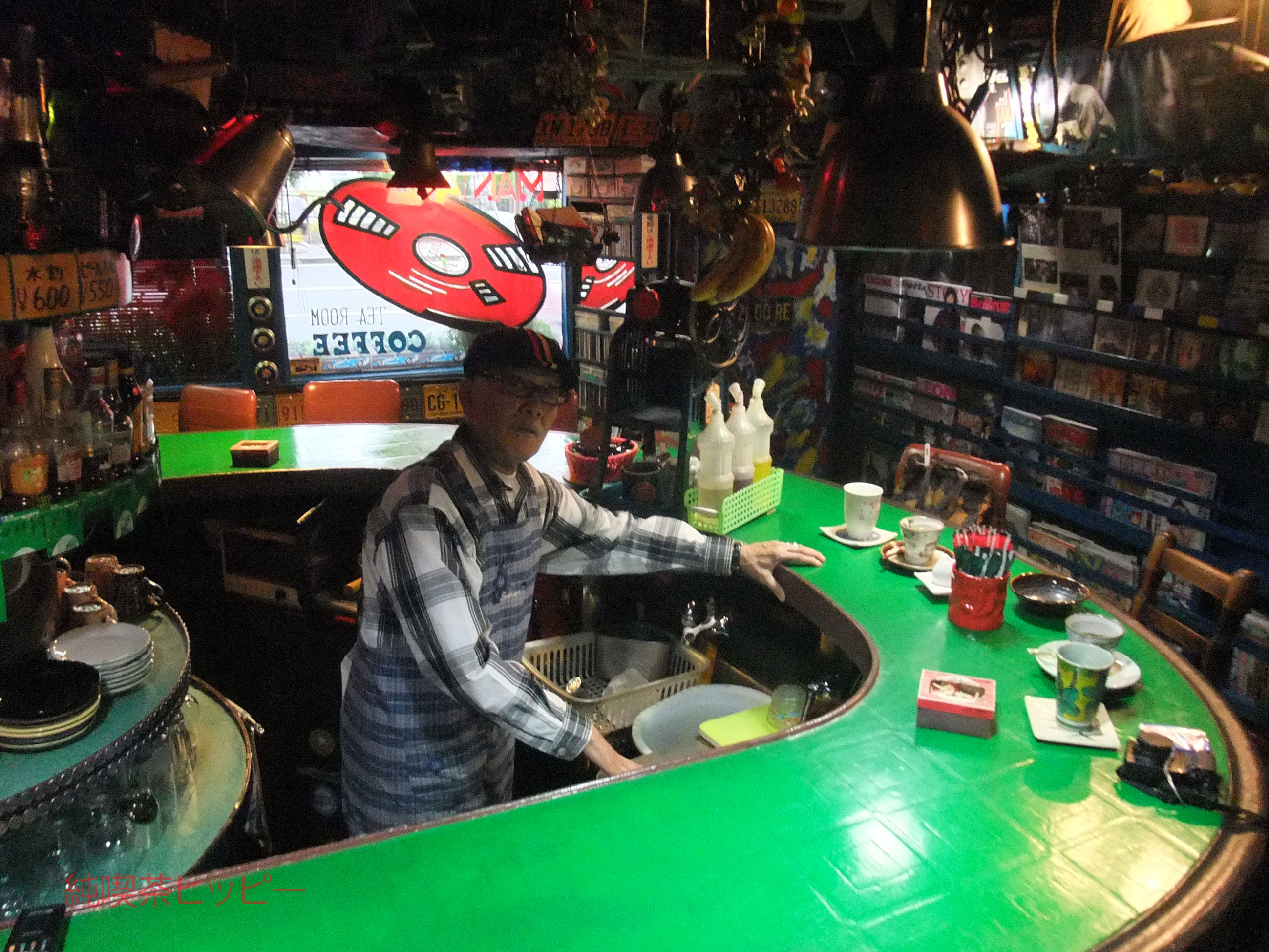 緑色のU字型カウンターの中でジャズを流し続けて52年。